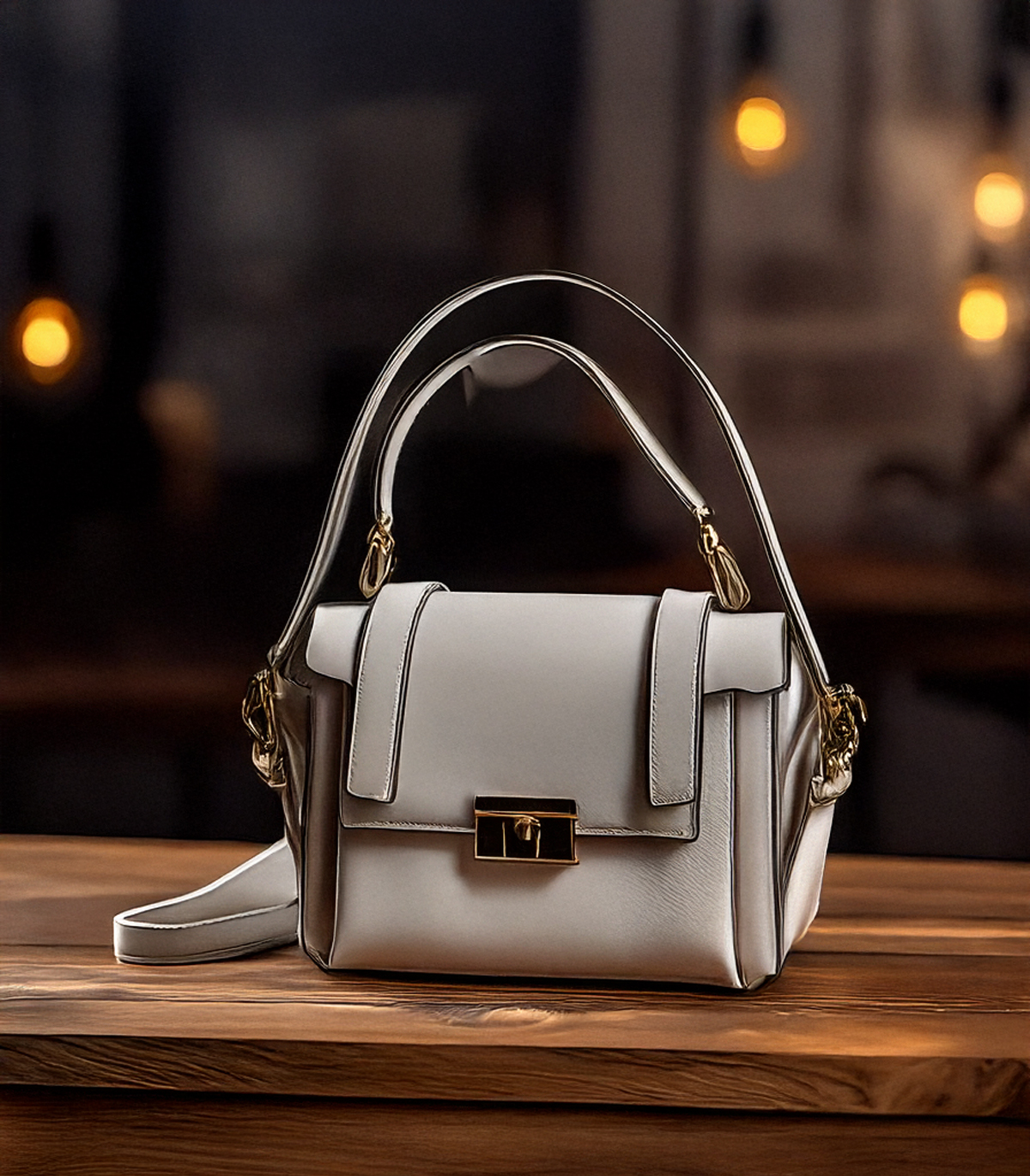 Handcrafted Genuine Leather Women's Bag - Milkshake White, 25cm